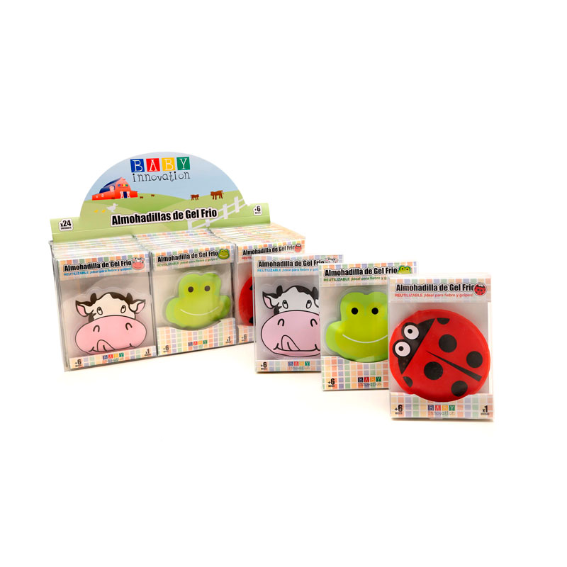 Disponibles en tres modelos: sapo, vaca y mariquita * Reutilizables * Se enfrían en 20 min. *No se ponen rígidas para brindar una mayor adaptabilidad a la superficie al momento del uso * Ideal para golpes *No apta para microondas * Materiales: hipoalergénico * BPA free – Libre de ftalatos