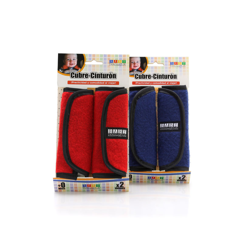 Cobertor para cinturón de seguridad, butacas, arnés, etc. – Línea de paseo para bebés Baby Innovation * Disponibles en dos colores: rojo y azul * Universales y adaptables a la mayoría de los cinturones de las sillas para autos, los cochecitos y los huevitos para bebés * Diseñados para proteger la cara y el cuello del bebé cubriendo las correas de los cinturones de seguridad * Fáciles de utilizar gracias a sus sistema de practi-cierre con velcro * Materiales: microfibra y pique bondeado * BPA free – Libre de ftalatos