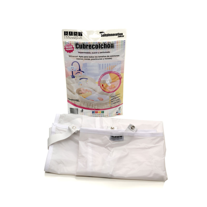 Cubrecolchón adaptable con aroma y cintas ajustables – Línea de varios para bebés Baby Innovation * Tamaño extra grande: 64 x 92 cm * Impermeable y perfumado * Posee elásticos para una mayor sujeción * Super resistente * No produce ruidos para una mayor comodidad durante el sueño * Materiales: plástico bombachita * BPA free – Libre de ftalatos