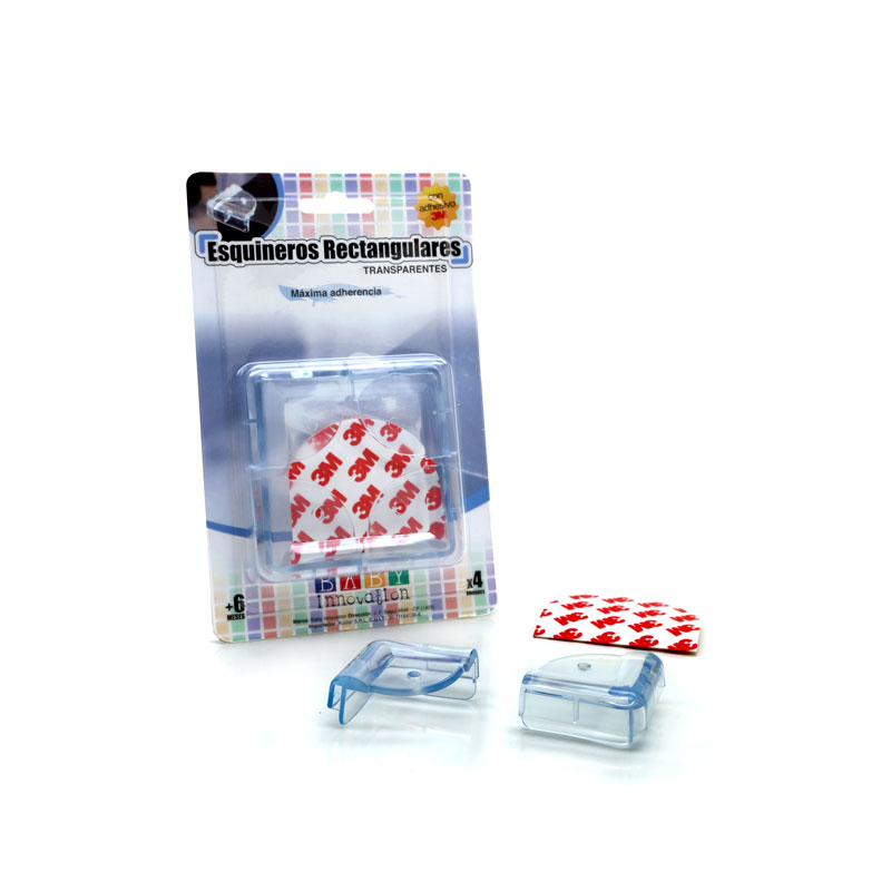 Protectores transparentes para puntas de mesa rectangulares – Línea de seguridad para bebés Baby innovation * Ideales para cubrir puntas de mesas, mesadas y muebles en general * Previene golpes y lastimaduras * Incluye adhesivo 3M * Material: silicona * BPA free – Libre de ftalatos