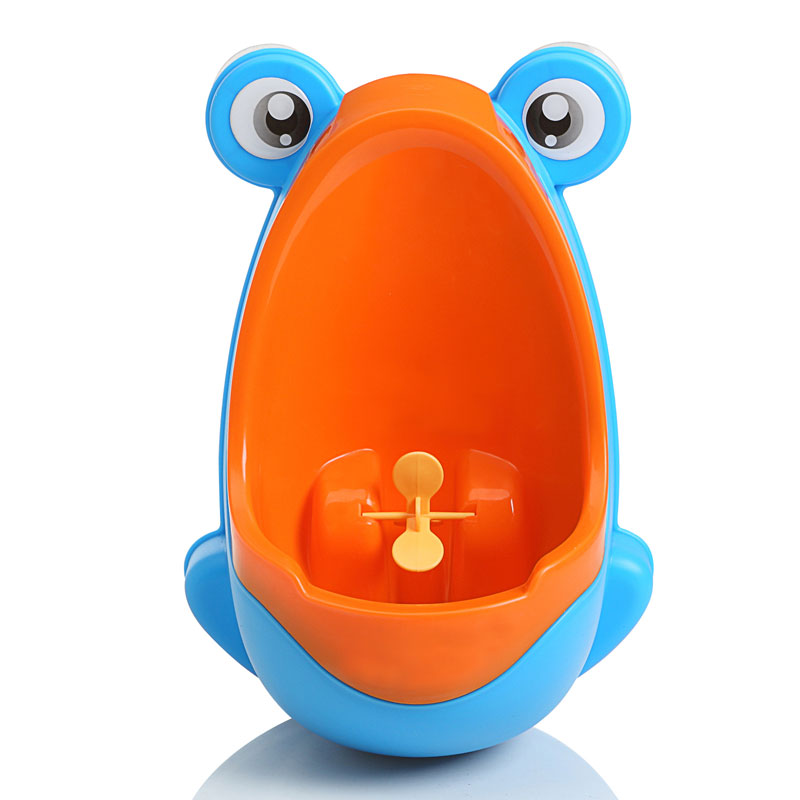 Mingitorio infantil con sopapas en forma de sapo – Línea de baño para bebés Baby Innovation * Disponible en cuatro colores: verde, marrón, azul y celeste/naranja * Super alegre y con un molinillo lúdico para motivar a que el bebé empiece a ir solo al baño * Su parte delantera es desmontable para facilitar su higiene y limpieza * Práctico sistema de sopapas para facilitar su adhesión las veces que sea necesario * Livianos y fáciles de trasnportar * Material: PVC * BPA free – Libre de ftalatos
