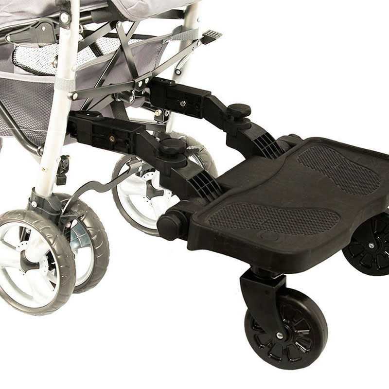 Plataforma universal para cochecitos – Línea de paseo Baby Innovation * Ideal para los hermanitos más grandes * Universal y adapatable al 99% de todos los cochecitos * Sistema de sujeción Premium para mayor seguridad * Amplia plataforma para mayor comodidad y estabilidad del niño * Edad recomendada de uso: +24 meses * Materiales: PVC y metal * BPA free – Libre de ftalatos