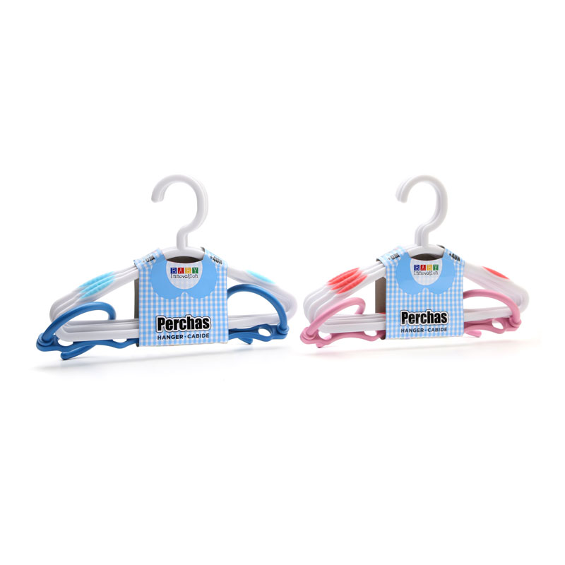 Perchas infantiles con colgador – Línea de varios para bebés Baby Innovation * Disponible en dos colores: celeste y rosa * Incluye colgador Premium para optimizar el espacio * Super resistentes * Con gomas anti-deslizantes para evitar caídas * Materiales: PVC * BPA free – Libre de ftalatos