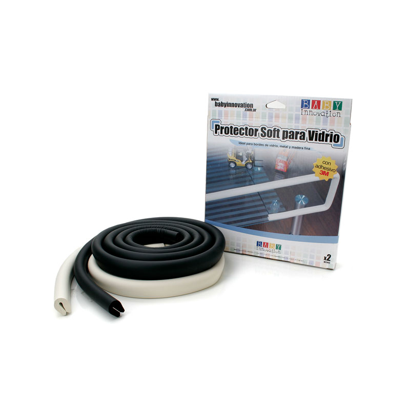 Protector de laterales angostos de vidrio – Línea de seguridad para bebés Baby Innovation * Disponible en dos colores: negro y beige * Tira de goma suave y acolchonada de 2mts. ideal para prevenir posibles golpes * Aplicable a mesas, mesadas y muebles de vidrio * Incluye adhesivo 3M * Materiales: E.V.A. * BPA free – Libre de ftalatos