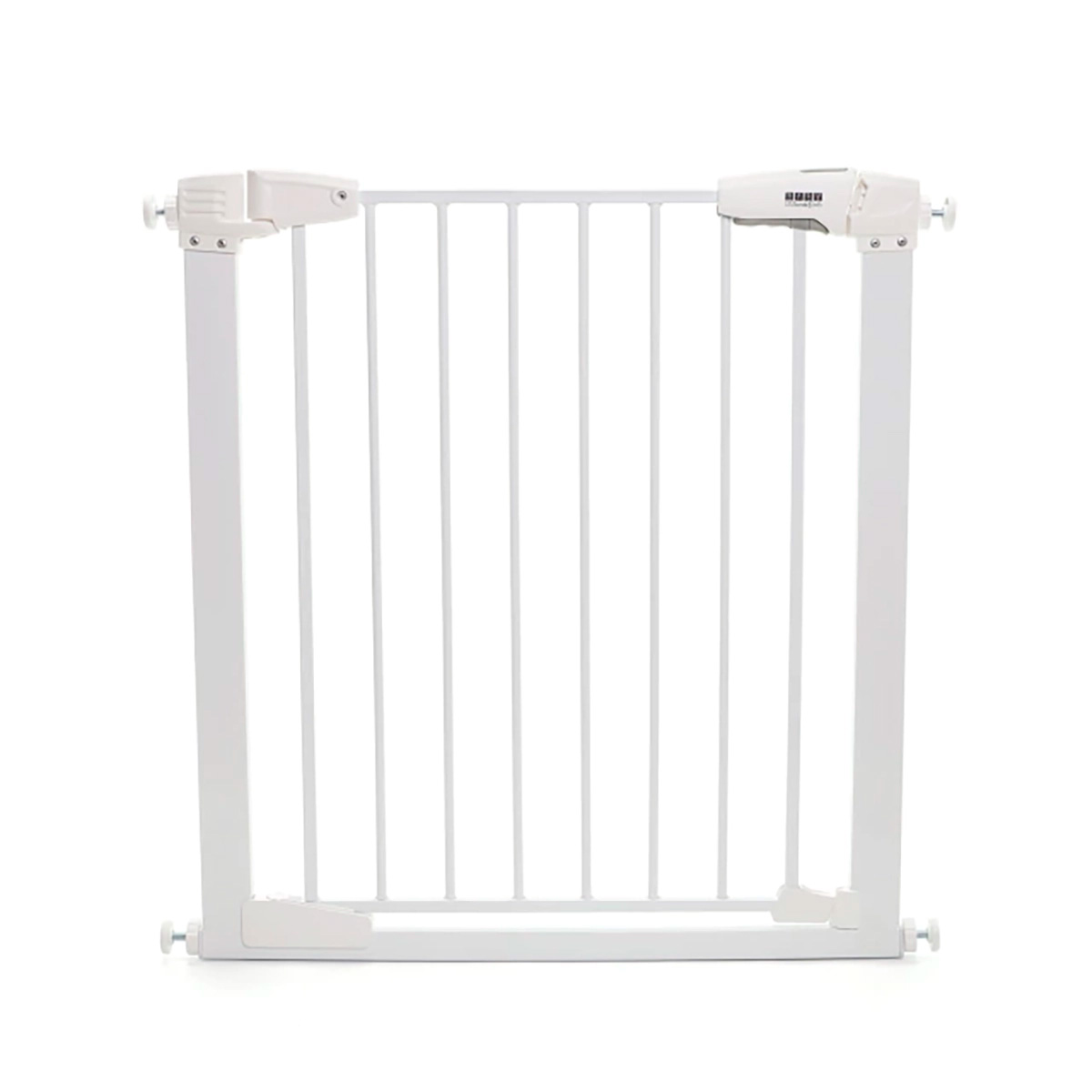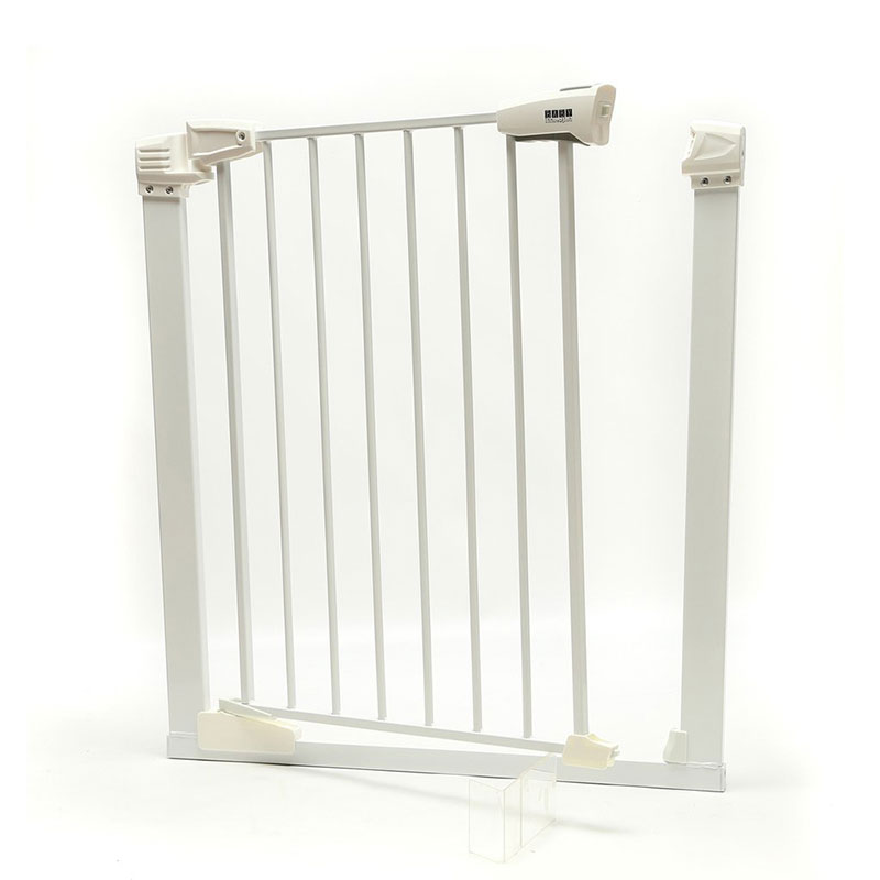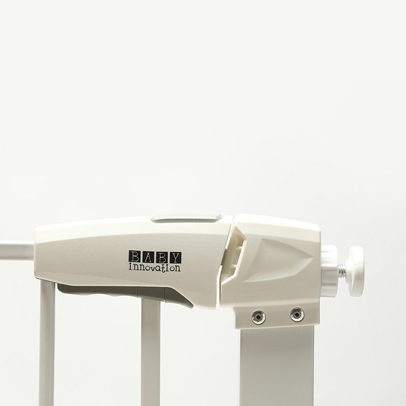 Puerta de Seguridad metálica para escaleras y otros – Línea de seguridad para bebés Baby Innovation * Ideal para limitar el acceso del bebé a escaleras y habitaciones * No requiere tornillos * Sistema de apertura de doble botón para facilitar y agilizar el uso por parte de los adultos * Apertura de hasta 100° hacia ambos lados * Super resistente * Cuenta con una altura de 75 cm y un ancho ajustable de entre 76 a 83 cm. * Adaptable a extensiones * Materiales: PVC y aluminio * BPA free – Libre de ftalatos