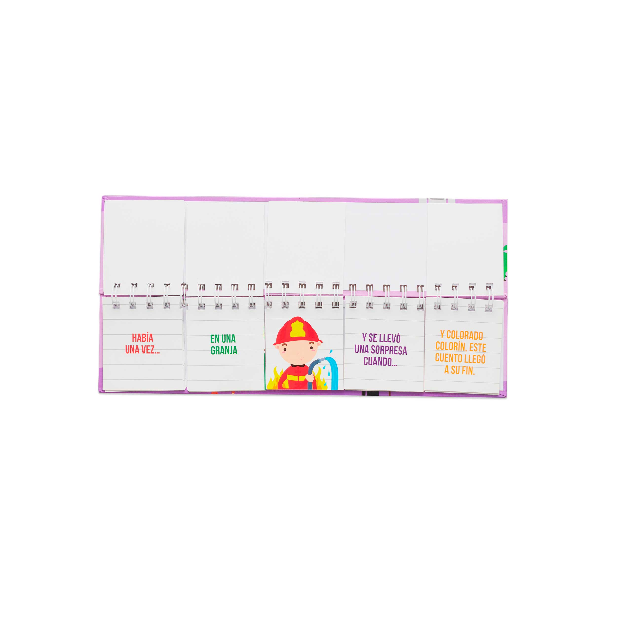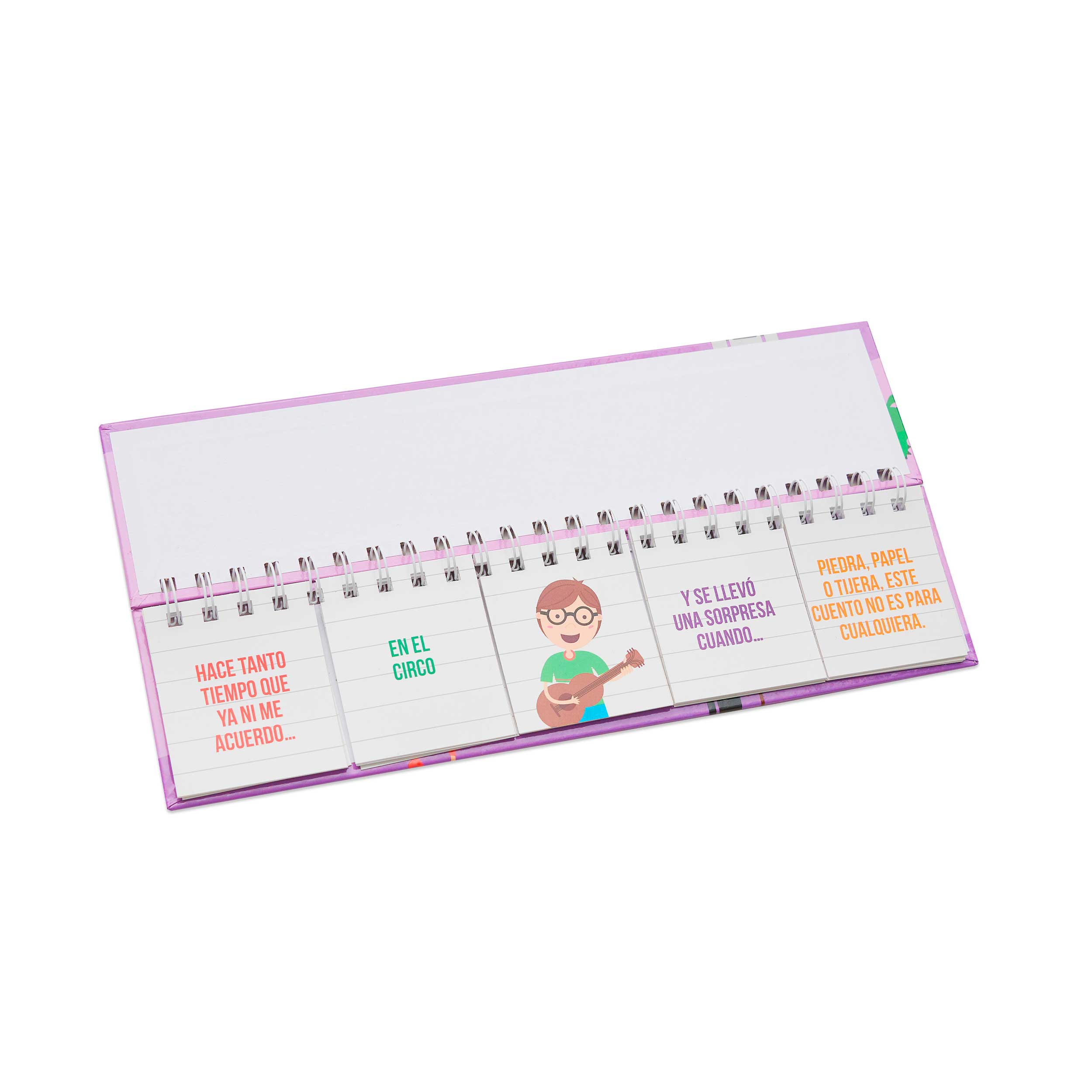 Una excelente herramienta para estimular la creatividad de niños y niñas. Usan las distintas partes del Libro como disparador para crear una historia ¡Dónde todo lo que ocurre sólo tiene el límite de la imaginación! Tapa dura de cartón montado, anillado reforzado y hojas laqueadas para su mayor resistencia y duración.
