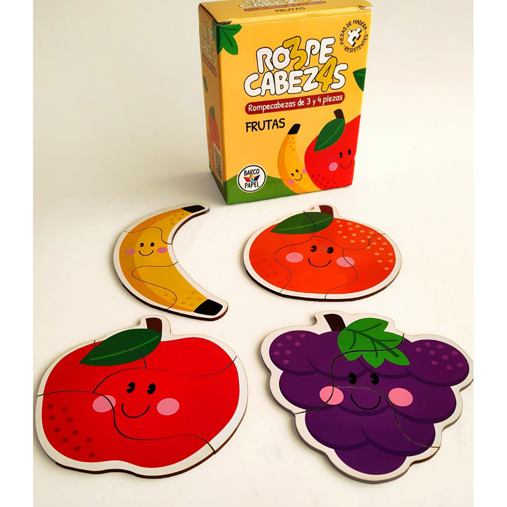 BARCO DE PAPEL – Rompecabezas x 4 de 3 y 4 piezas – Frutas
