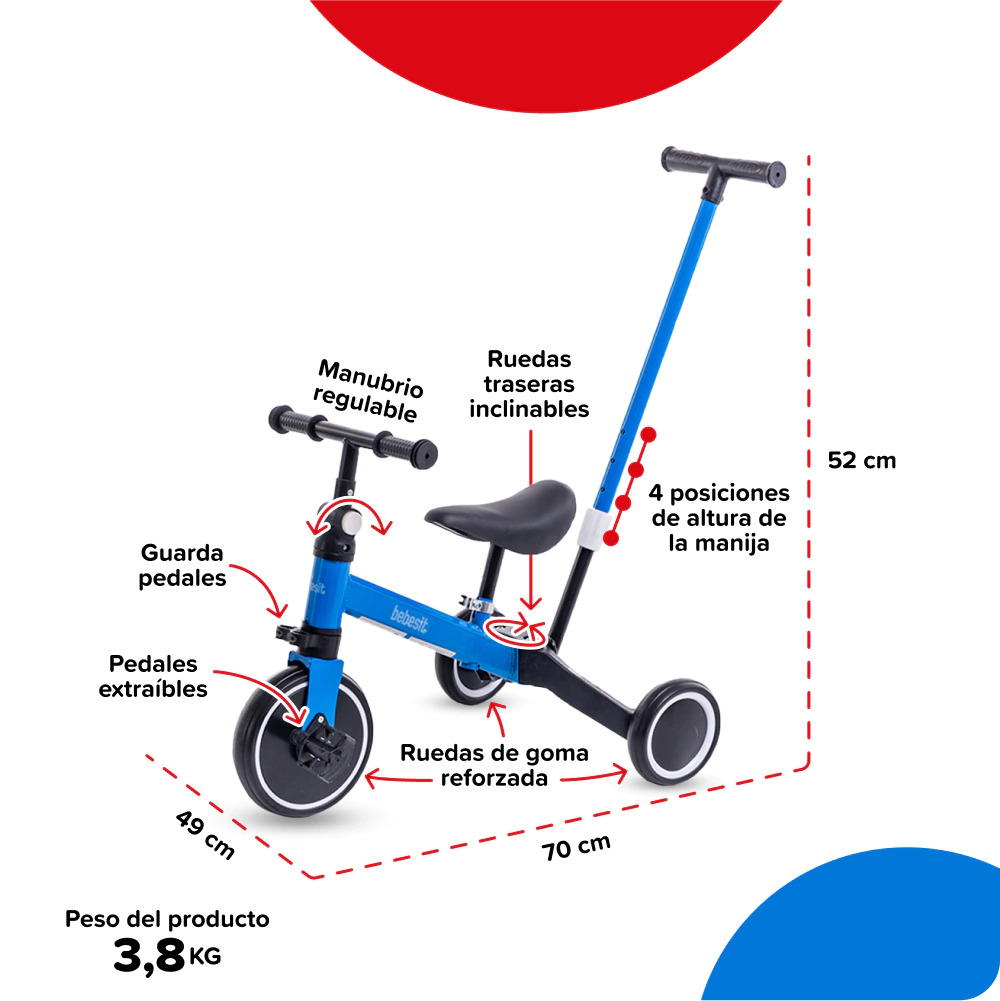 BEBESIT – Triciclo con barra de empuje Verde – SL-1701-A