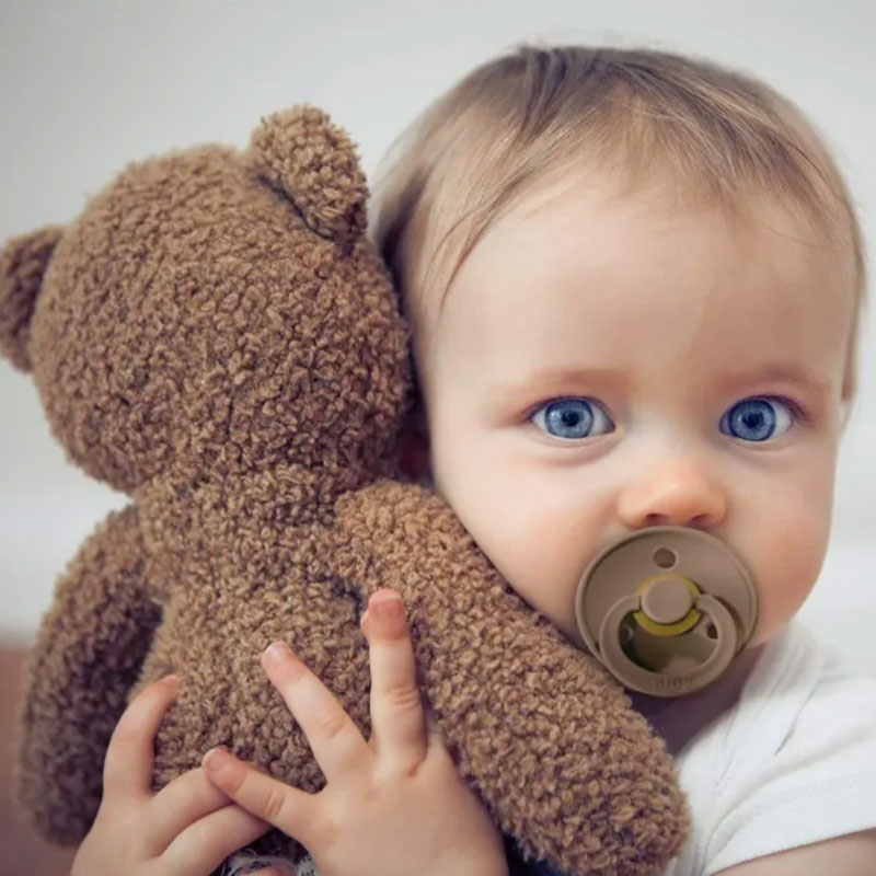 El chupete Bibs es un verdadero clásico. El chupete con la placa redonda característica y la tetina en forma de cereza proporciona a los niños consuelo y seguridad desde hace casi 50 años.