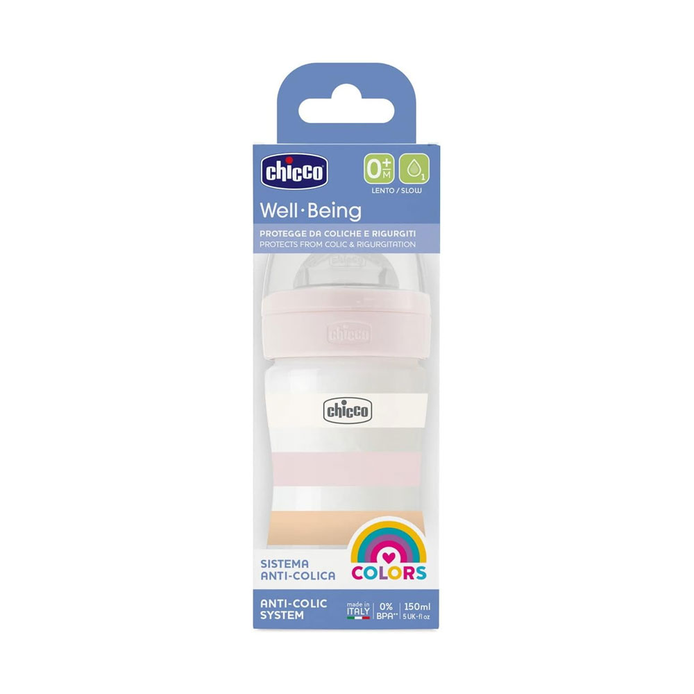 CHICCO NURSING – Mamadera Well-Being 150 ml 0M+ Flujo Lento Rosa – C67913