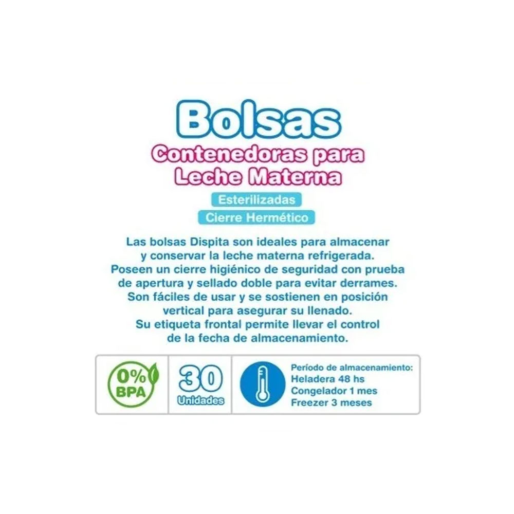 DISPITA – Bolsas Contenedoras Para Leche Materna – Por 30 Unidades – 10837