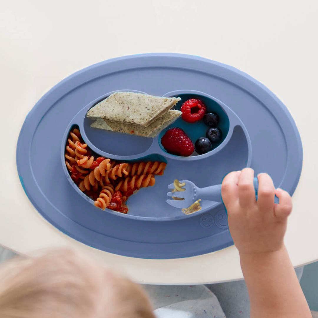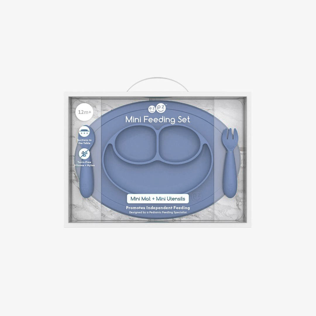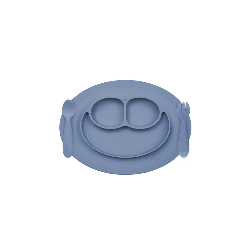 EZPZ – Plato De Silicona Tenedor + Cuchara Mini Feeding Set Indigo
