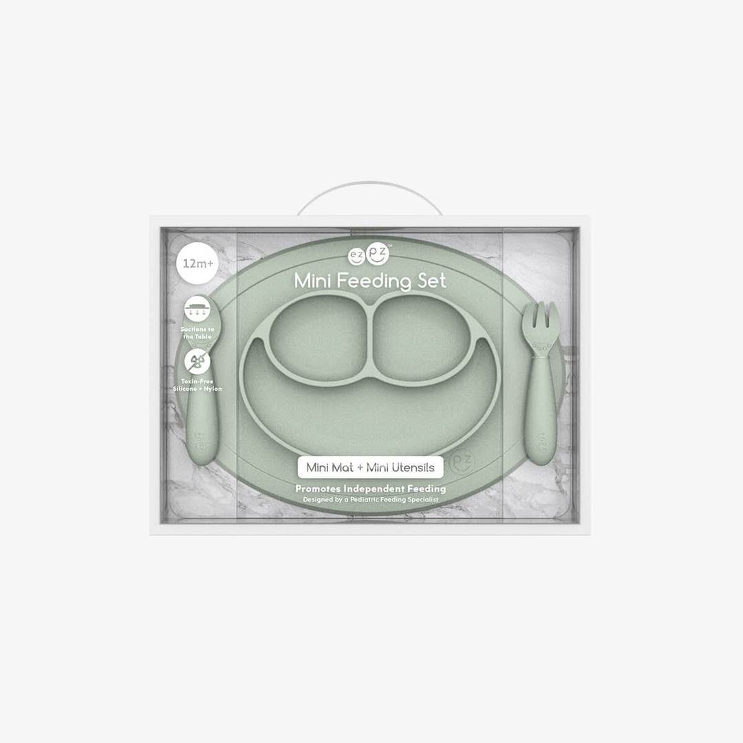 EZPZ – Plato De Silicona Tenedor + Cuchara Mini Feeding Set Sage