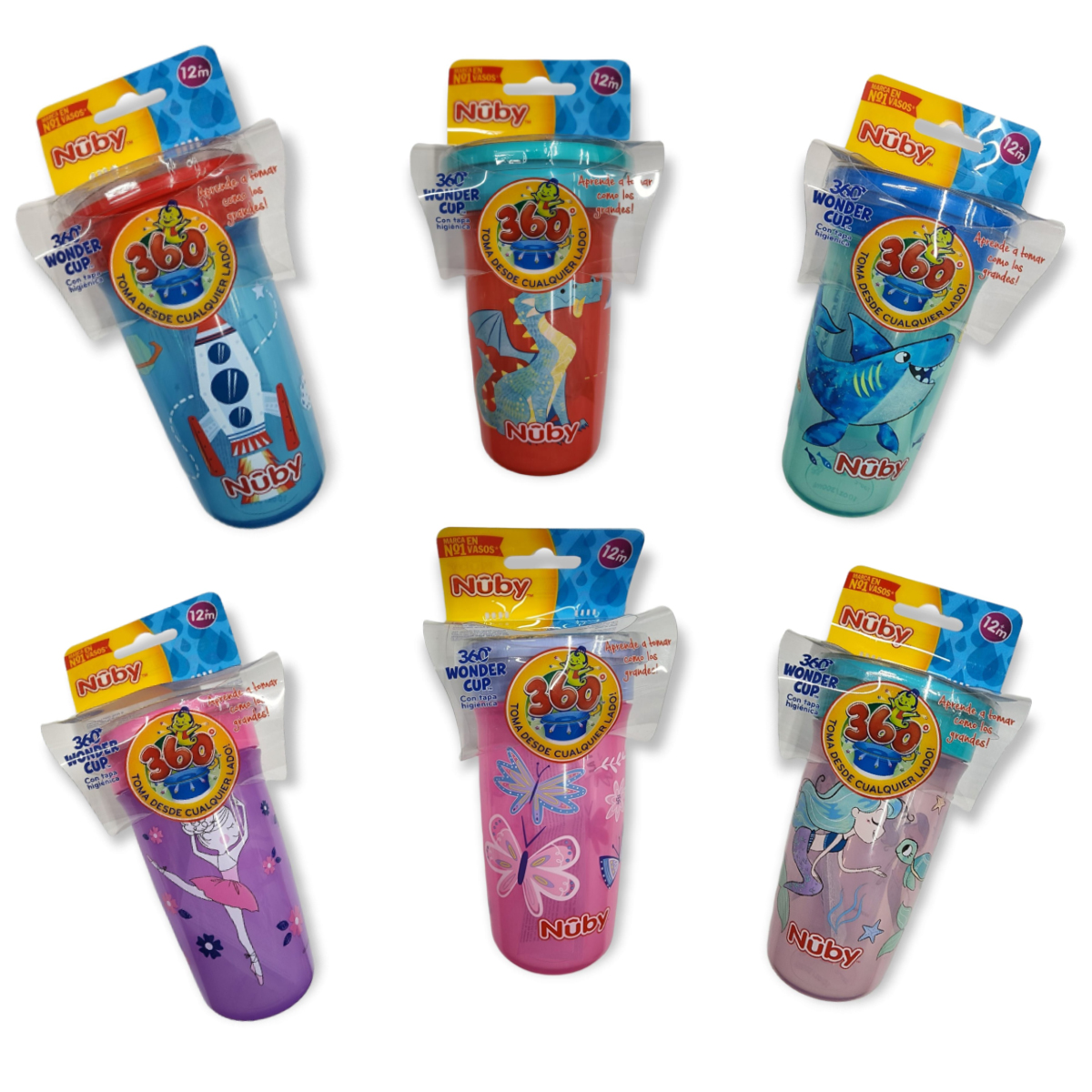 La taza Mágica 360° de Nûby™ hace la transición de la taza al vaso más fácil. Tu niño le encantará bebrer del borde 360° de esta taza.
