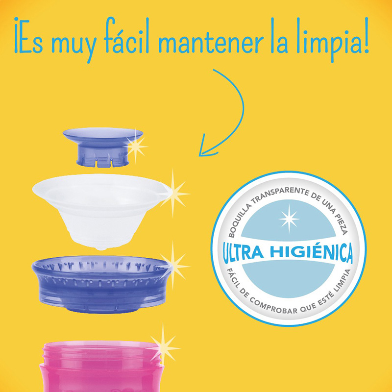 limpiar, se abre fácilmente con la presión de los labios, de modo que el niño controla el flujo de líquido y la válvula se auto cierra cuando deja de presionar