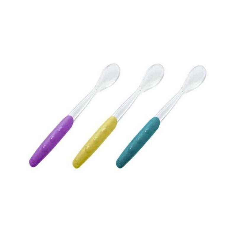 Set de 2 Cucharas Largas de Silicona NUK Easy Learning * Extra suave para pasar gradualmente de la succión al uso de una cuchara * Tamaño ideal para la boca de un bebé * Mango flexible extra largo, ideal para recipientes profundos * Apto para microondas y lavavajillas * 2 unidades por blister