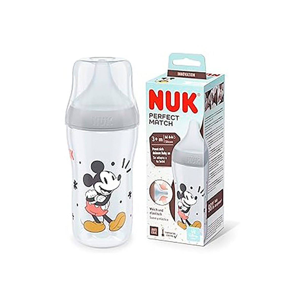 NUK – Mamadera Perfect Match 260 ml Cont de Temp MICKEY MOUSE Gris – 742040