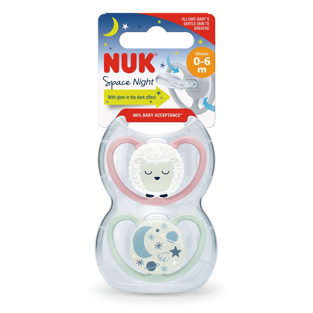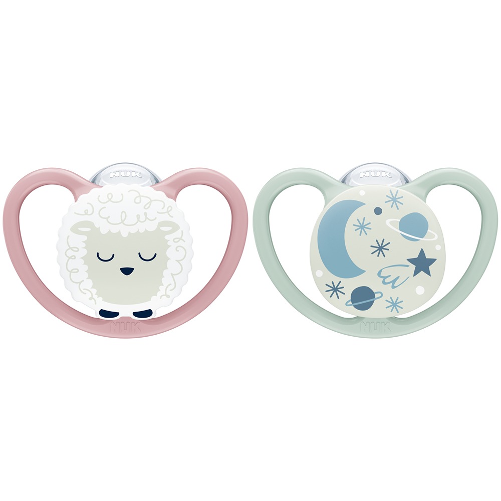 NUK – Set de 2 Chup Space luminoso 6-18 m Oveja/Galaxia – 736933