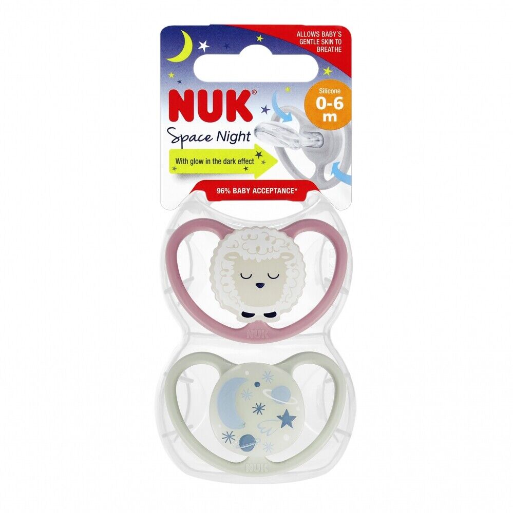NUK – Set de 2 Chupetes Space Luminoso T1 Oveja/Galaxia – 730899